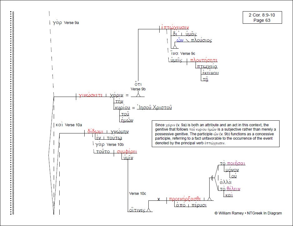 There are an extraordinary number of Greek participles in this letter that function as part of a periphrastic construction. At several instances the syntax is broken and special attention is required to keep Paul's continuity. It is recommended that this diagram set be purchased after at least three semesters of Greek or equivalent because of Paul's involved literary syntax and moderate amount of vocabulary required to read this letter.
