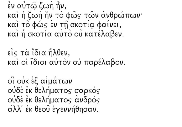 The excerpt below is from John 1 of the Greek New Testament. Your continued diligence practicing reading Greek will lay a firm foundation for learning more Greek later. Do not struggle trying to identify the words as you read them. This exercise is designed for you to see, hear and read for yourself the Greek New Testament. Notice that the words not accented are glided into the following word without hesitation. |
